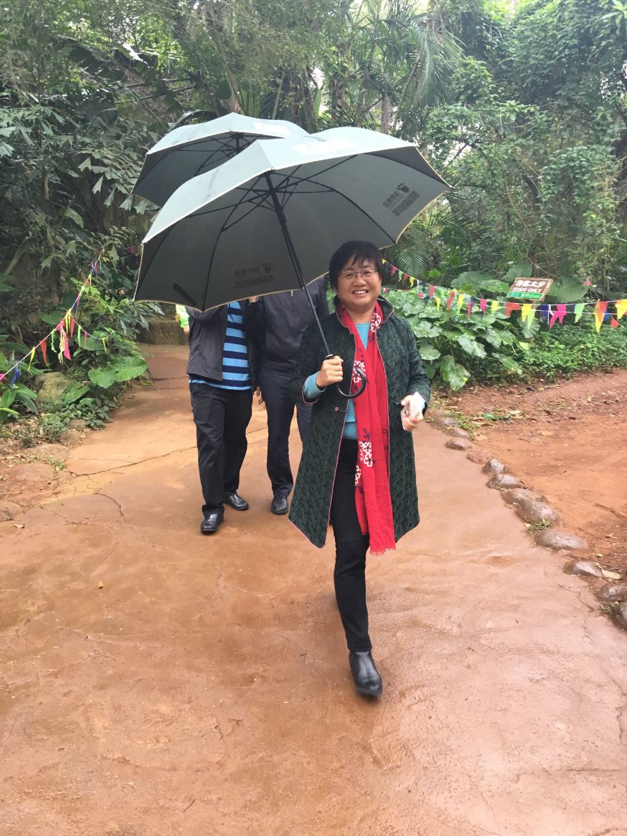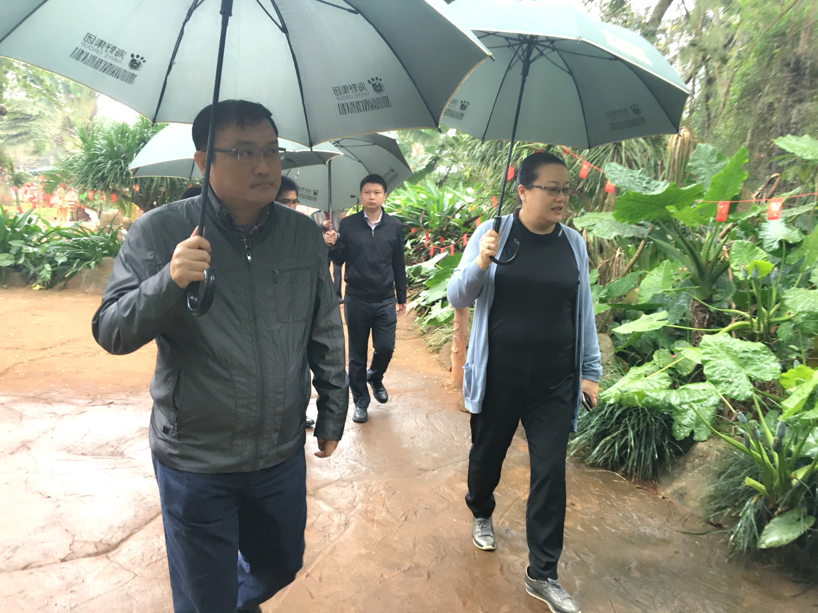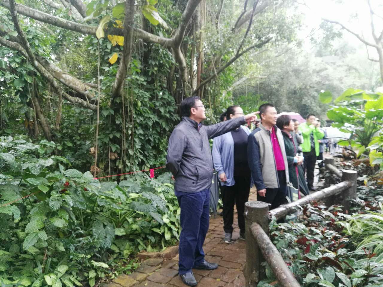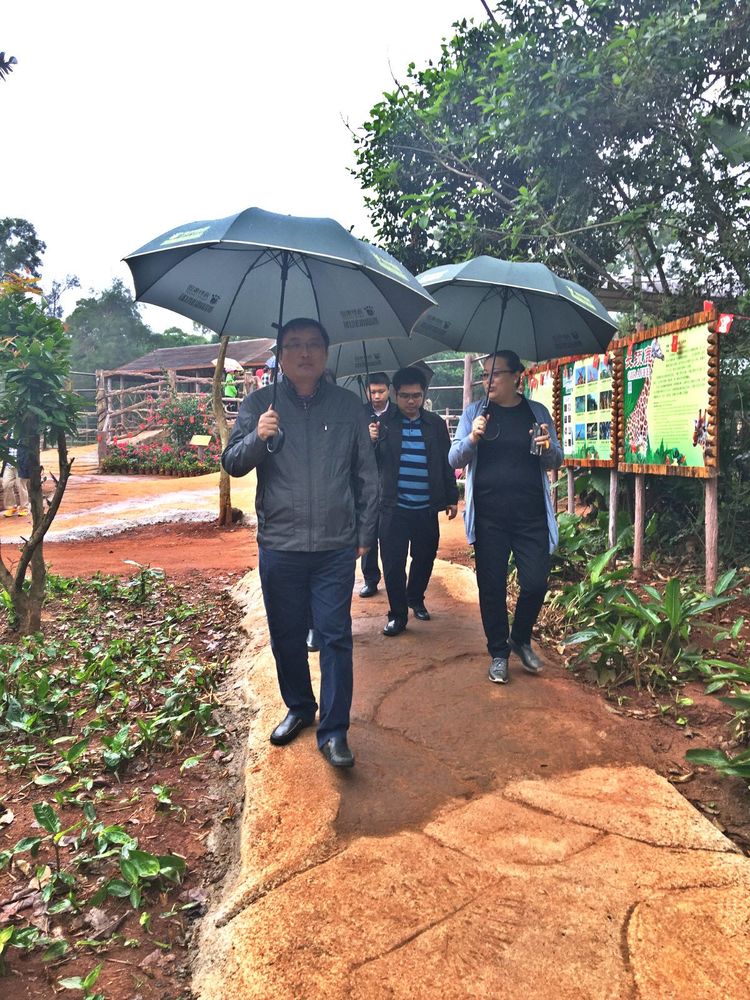 1月31日,大年初四,海口市副市长孙世文、副秘书长杜欣能、旅发委主任廖小平等主要领导到海南热带野生动植物园冒雨检查指导旅游景点工作。