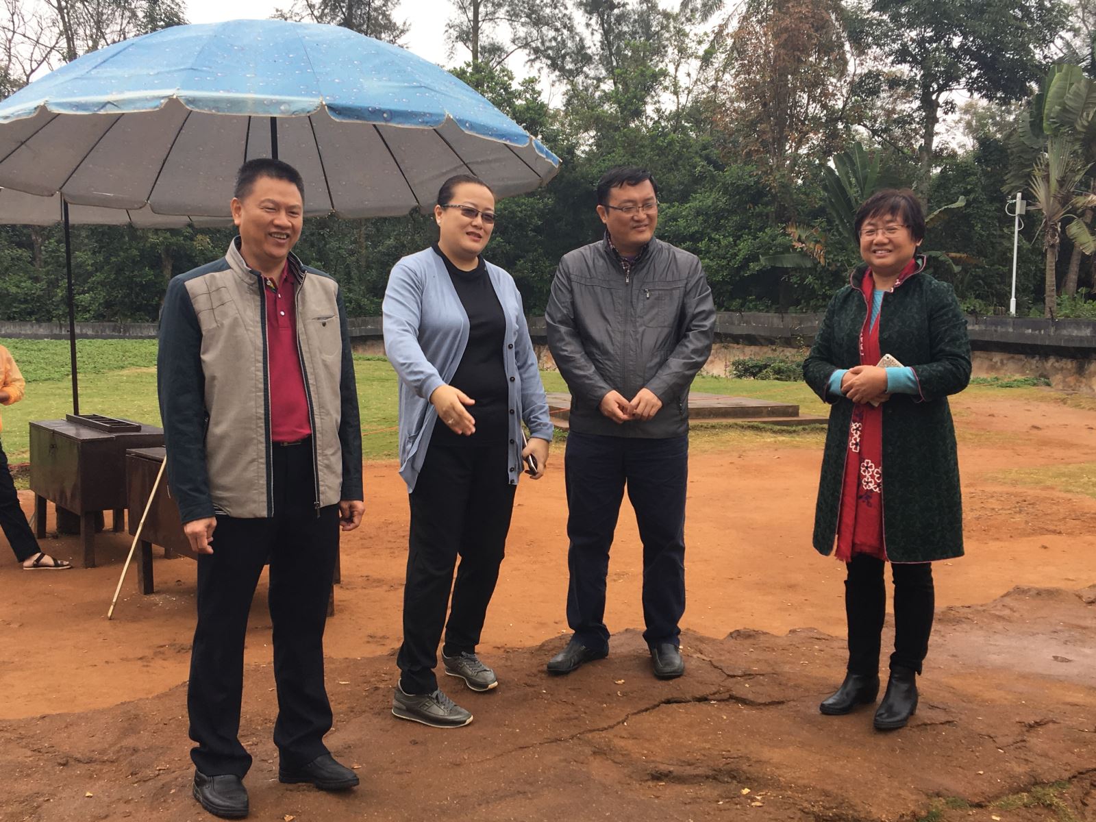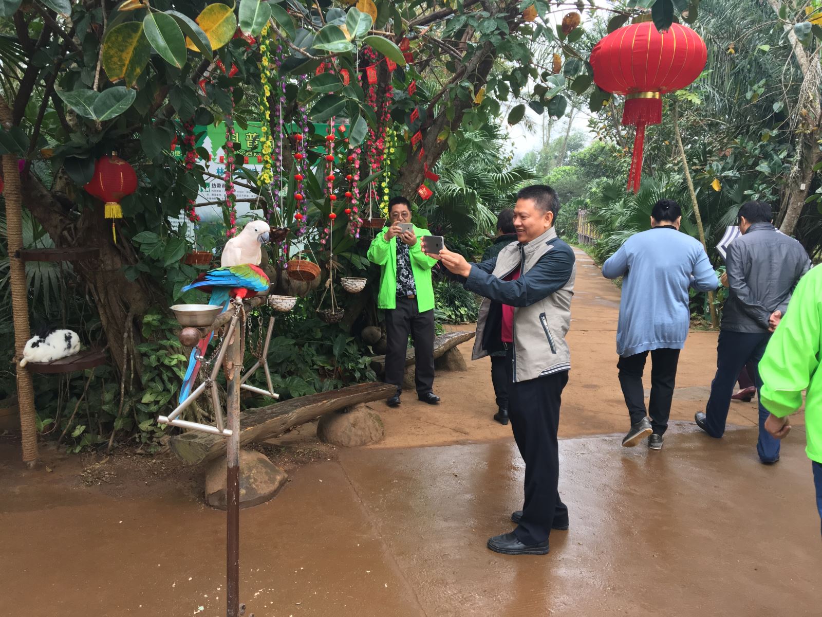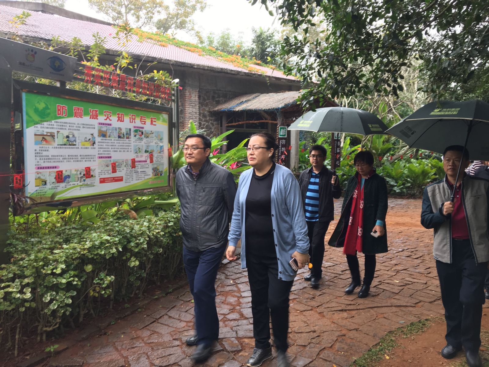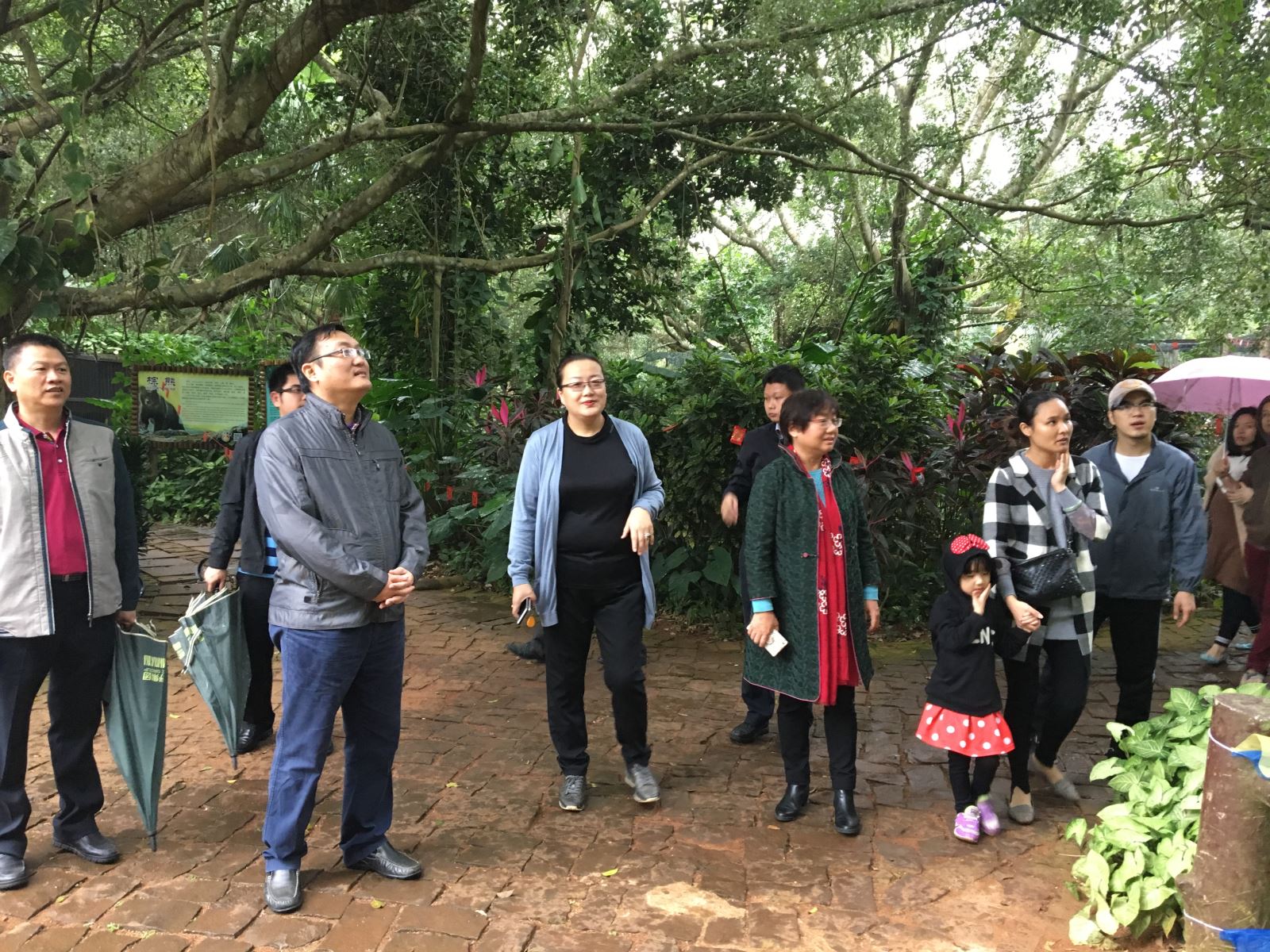 1月31日,大年初四,海口市副市长孙世文、副秘书长杜欣能、旅发委主任廖小平等主要领导到海南热带野生动植物园冒雨检查指导旅游景点工作。