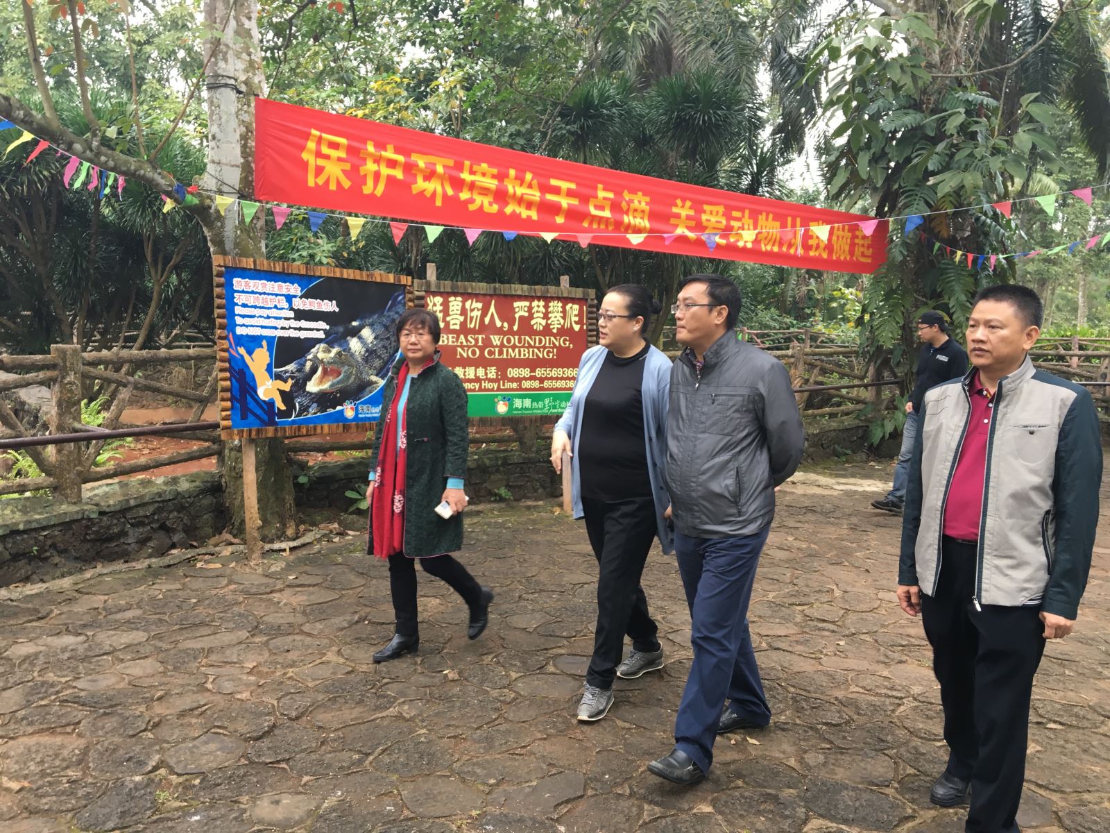 在海南热带野生动植物园,孙世文副市长听取了园区董事长尚晓的工作汇报,详细了解景区游客数量变化,查看景区的商店经营秩序以及环境卫生状况、治安防范工作等。景区环境整洁、秩序井然,游客文明有序,节日喜庆、祥和的气氛较浓,孙世文副市长对此给予充分肯定,并强调保安和环卫要加强协调安排好值班工作,工作人员到岗到位,保证管理和服务力度,随时做好春节期间游客高峰的准备工作。