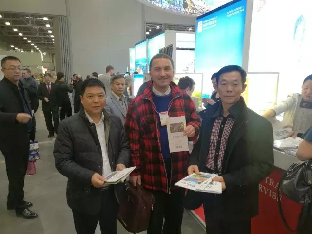 (与国家旅游局驻莫斯科旅游办事处赵洪青主任交流并合影留念)