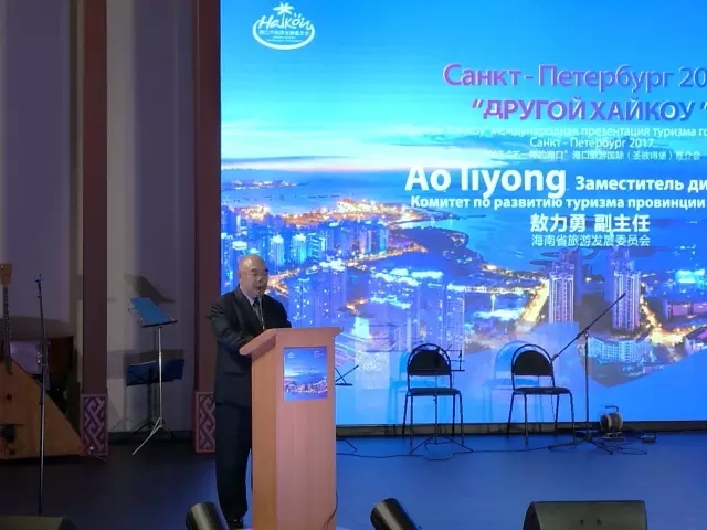 推介会伴随着欢快的俄罗斯歌舞表演有序展开,对海口旅游资源进行了介绍,以海口旅游形象及海口旅游体验两个板块为重点,展示了海口特色的十大旅游产品:海洋旅游、养生理疗旅游、高尔夫旅游、美食旅游、花卉旅游、会展旅游、婚庆旅游、文化观光旅游、乡村旅游、探亲学子旅游。推介会还对海口市旅游优惠政策和旅游奖励办法进行了介绍,如便利通关、离境退税、离岛免税政策和航空、旅行社奖励办法等。