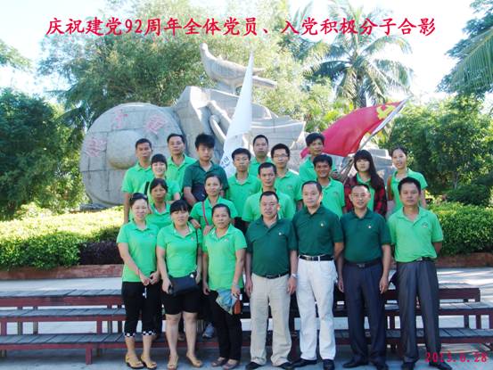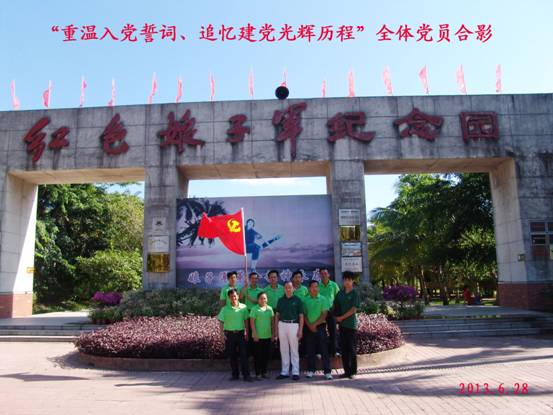 海南热带野生动植物园有限公司党支部为庆祝建党92周年,于2013年6月28日组织全体党员,入党积极分子赴琼海红色娘子军纪念园开展“追忆建党光辉历程,重温入党誓词”主题教育活动。 通过踏访革命红色印迹,重温入党誓词,聆听红色娘子军104岁老红军讲述娘子军的光辉革命历程。全体党员,入党积极分子深受教育和启迪,更加明确了新时期共产党员的神圣职责和光荣使命,决心紧密团结在党组织周围,以高度的社会责任感和历史使命感为加快海南国际旅游岛建设,为实现我们的崇高中国梦建功立业。
