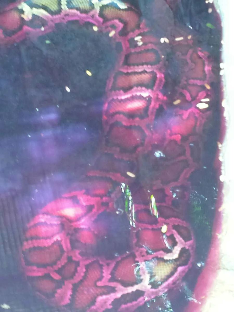 2015年8月7日凌晨05:00时许。海南热带野生动植物园24小时值班电话突然响起,值班经理何在林接通电话后,里面传来一串急促的声音:“是海南热带野生动植物园吗?我们家发现一条巨蟒在偷鸡吃,现在已被关在养殖场的鸡舍内,不知如何是好,能不能请你们来帮帮助……”。经过沟通了解,原来是琼海市长坡镇长坡村村民趙先生家发现一条巨蟒,非常害怕,不知道该怎么办,特地向海南热带野生动植物园求救。何经理立即向公司领导作了汇报,并组织了救助小组,立刻驱车赶往琼海长坡村实施救助。专业救助人员赶到现场后发现,这条蟒蛇十分活跃、精神状态良好,是因贪吃活鸡而闯入了村民的鸡舍。我专业救助人员与村民趙先生一起采取各种捕捉办法终将这条重约30公斤,长近4米的巨蟒捕获。