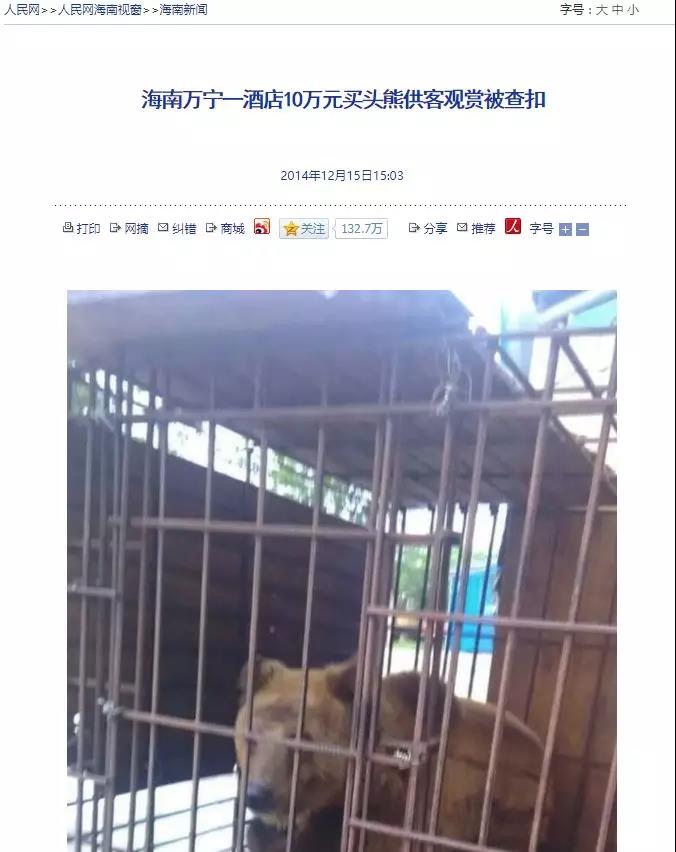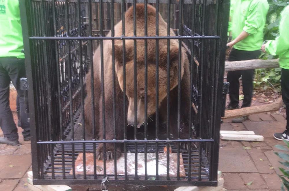 这只大棕熊是怎么来的呢?是一名市民朱某前往吉林省长春市青山乡宝来黑熊繁殖场购买,并雇用货车运回万宁,放在东山鹿场训养,后提供给礼纪镇礼纪商务酒店作为观赏。2014年12月,万宁市森林公安局接到举报电话,并立即组织民警赶赴现场展开调查,当场查扣棕熊一只。万宁市林业局希望将这只重600多斤的棕熊委托至海南热带野生动植物园寄养。海野了解这个消息后,积极配合并提供救助免费饲养。当时这头棕熊被送到海野时受了伤,情绪很暴躁。在动植物园医护人员的精心照料下,棕熊的情绪渐渐得到舒缓。伤口愈合后,活动也越来越灵敏。