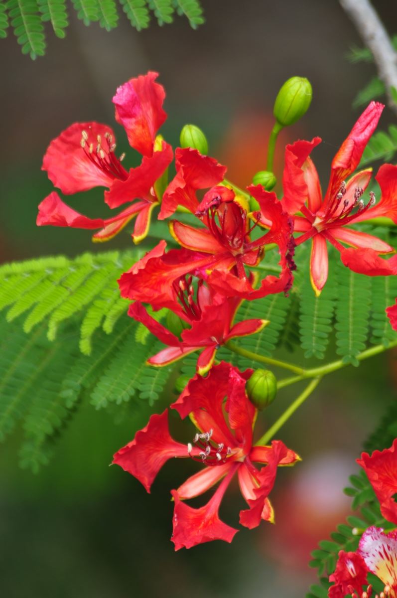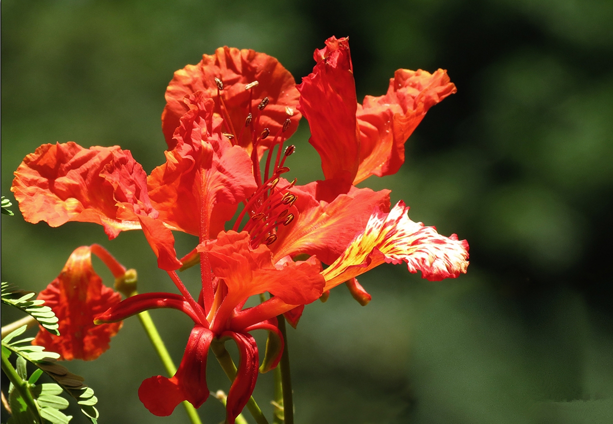 凤凰花繁密的枝叶和花瓣,