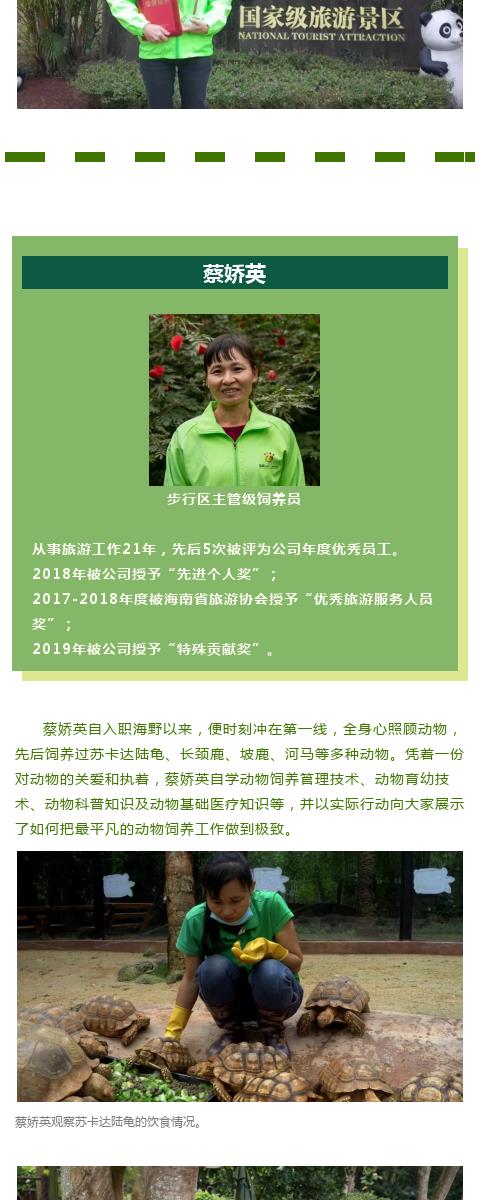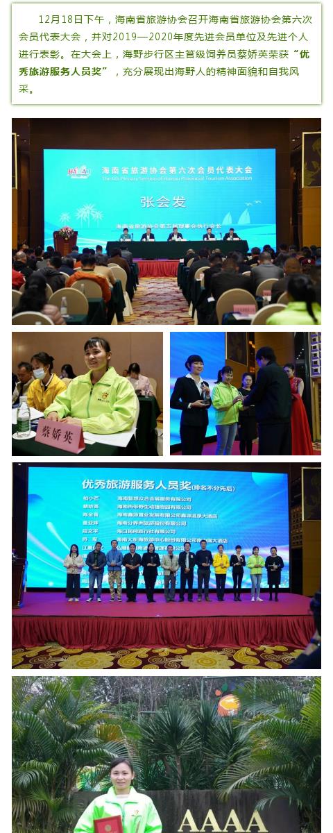 海野动物饲养员蔡娇英再获殊荣!荣获“优秀旅游服务人员奖”
