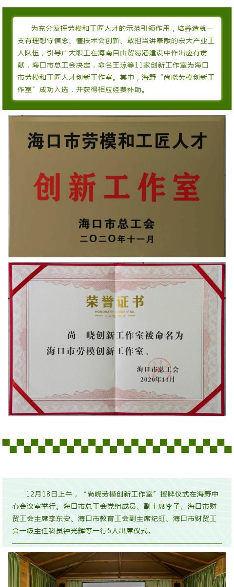 关注 ! 共同见证海野“尚晓劳模创新工作室”授牌