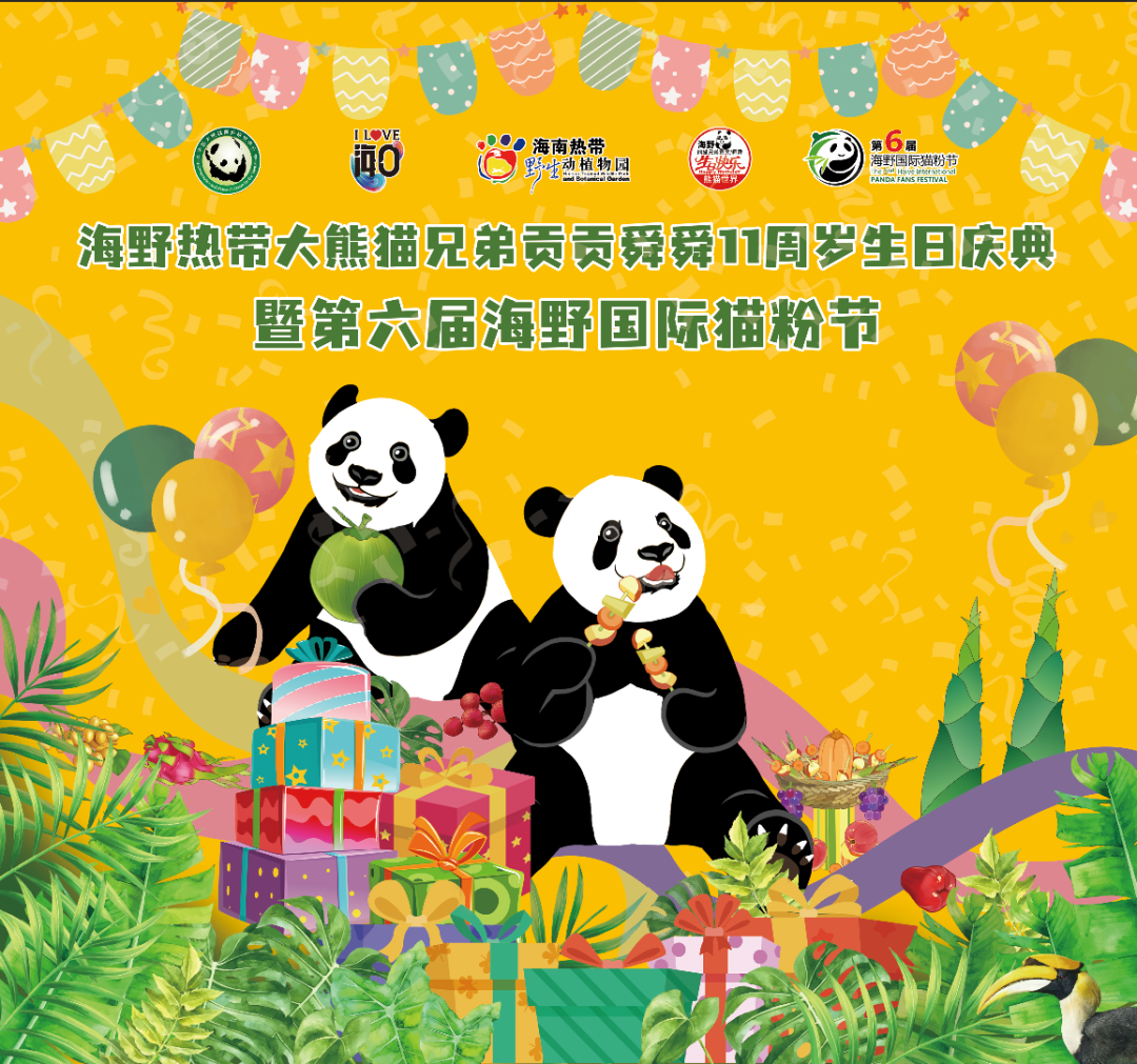 2024年8月24日上午,海野热带大熊猫兄弟贡贡、舜舜十一周岁生日庆典暨第六届海野国际猫粉节将在海南热带野生动植物园隆重举办!